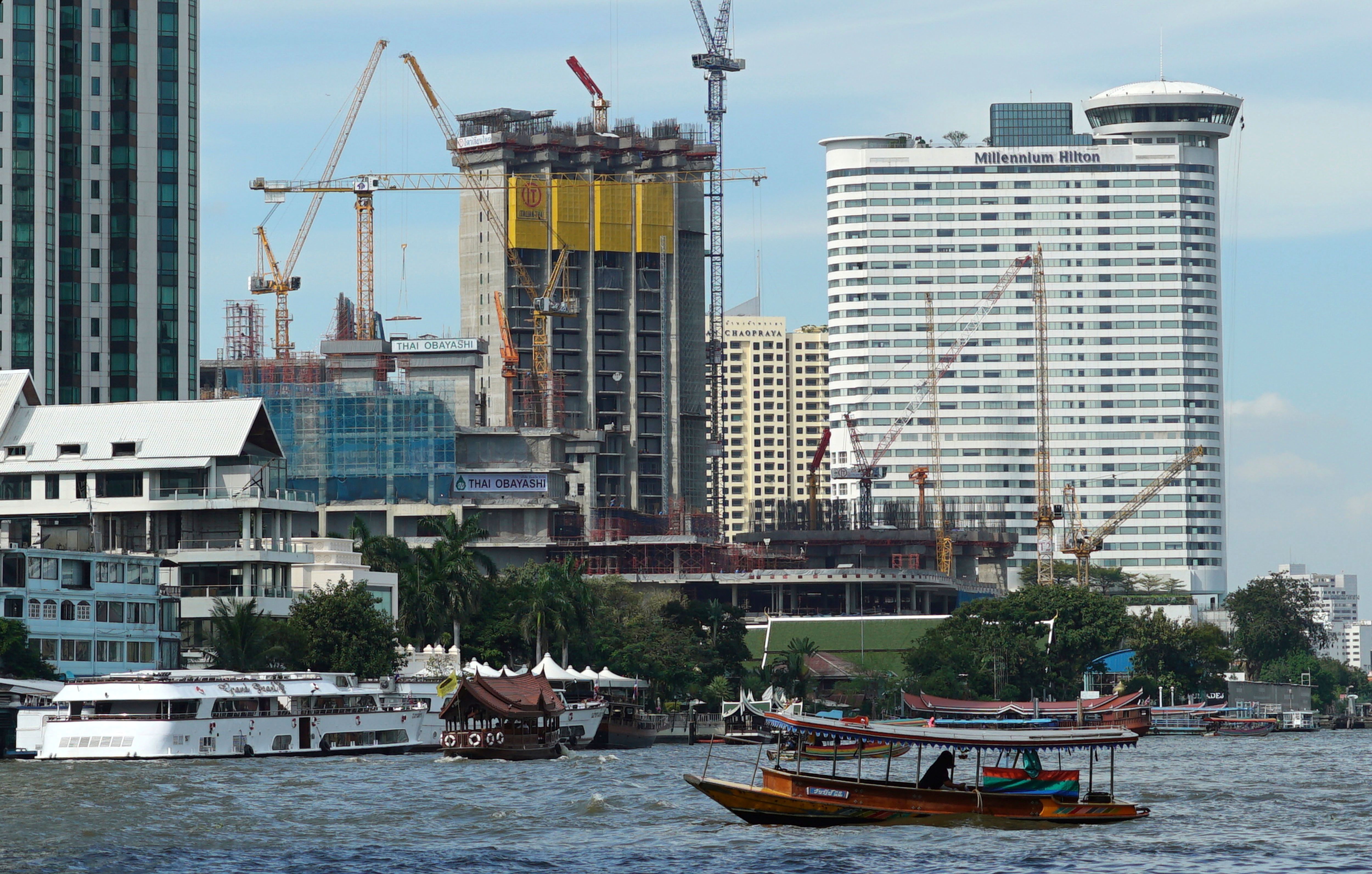 A riverboat taxi crosses the Chao Phraya River in front of massive construction projects Wednesday, Jan. 18, 2017, in Bangkok, Thailand. (AP Photo/Dake Kang)