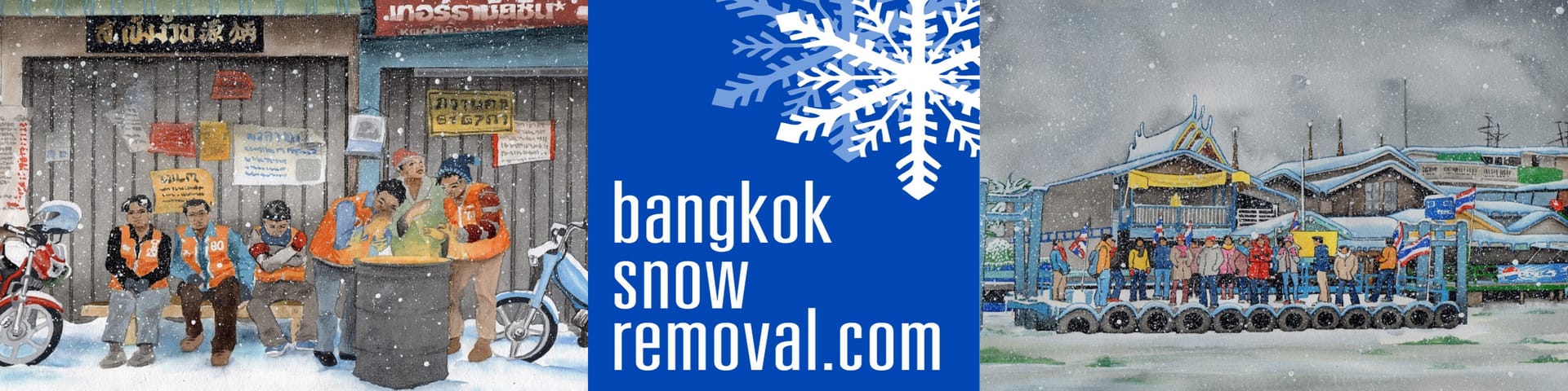 For a distinctive, eye-catching and thought-provoking look for your individual or corporate Christmas/New Year’s cards and calendars, Bangkok Snow Removal offers a selection of familiar Bangkok scenes covered in a beautiful blanket of pure white, glistening snow.