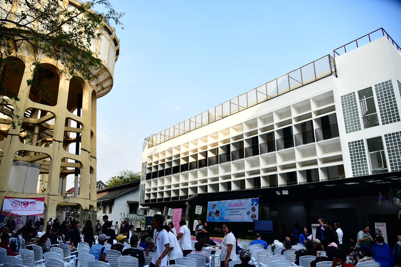 The old Maen Sri Waterworks in Pom Prap Sattru Phai reopened as a city-run homeless shelter in February 2026. (Photo from Bangkok Metropolitan Administration)
