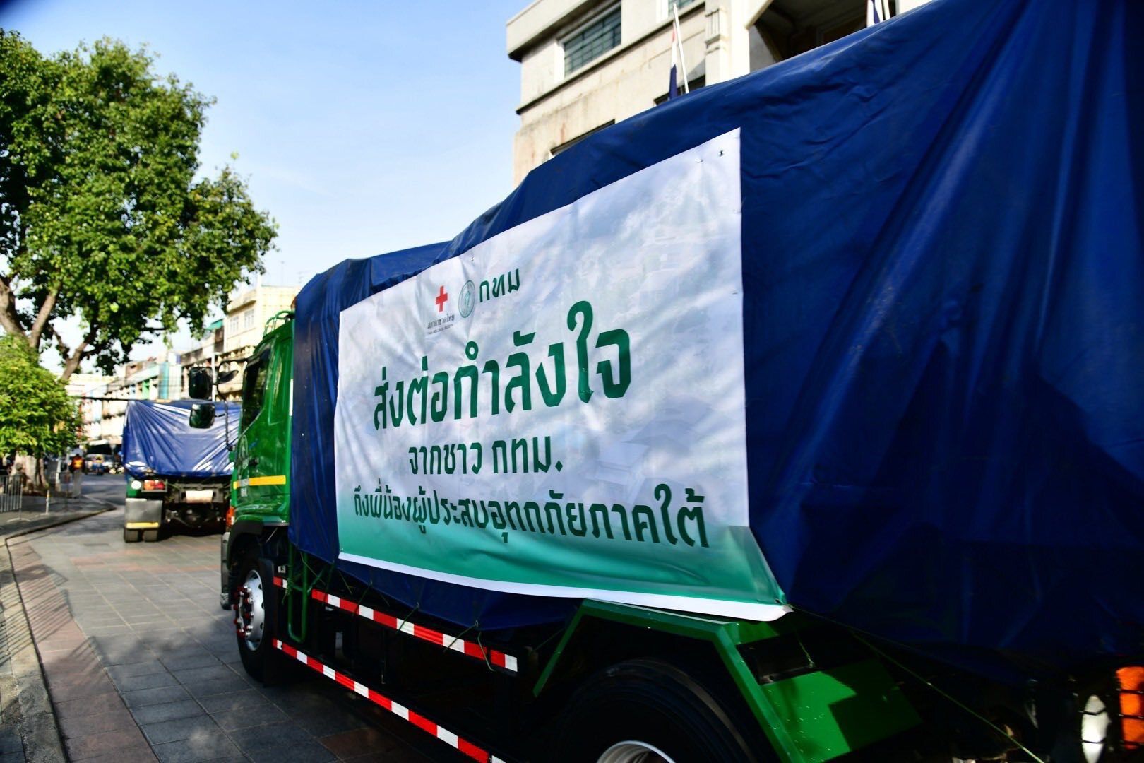 Bangkok’s trucks ship donated supplies south. (Photo from Bangkok Metropolitan Administration)