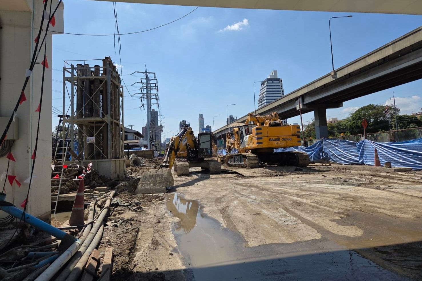 The image shows the construction of the Orange Line between Bang Khun Non-Thailand Cultural Center in Din Daeng District in December 2025. (Photo from Bangkok Metropolitan Administration)